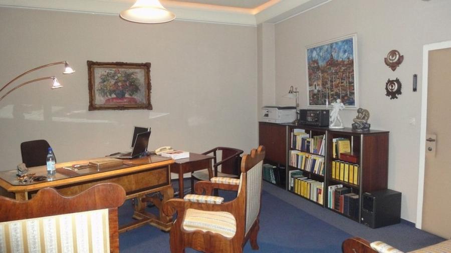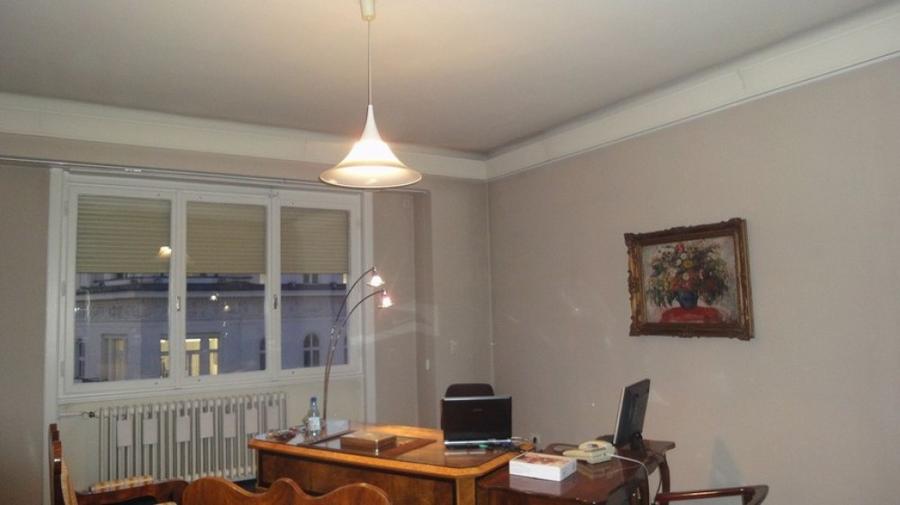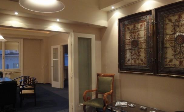 A 130 nm-es, IV. emeleti lakás - a gyönyörű házban lift van, a lakás maga alkalmas irodának is. 3 szobája és 1 fürdőszobája van, konyha, hall és külön gardob helyiség, valamint egy külön WC. Teljesen felújított, légkondicionált. Fantasztikus kilátás a térre valamint egy picit a Dunára is.