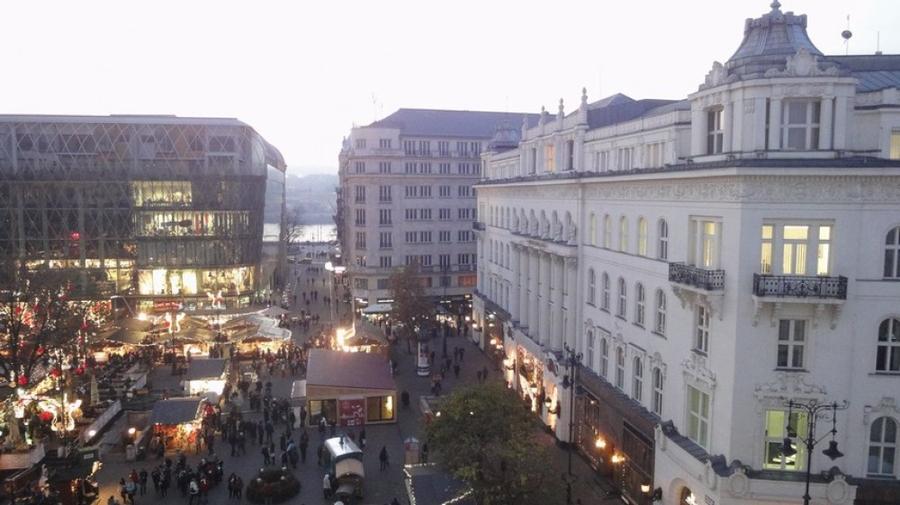 Vörösmarty tér a belváros központjában található. A sétáló Váci utca vége, éttermekkel, elegáns üzletekkel, 1 utcányira pedig a Duna part található. Tömegközlekedés szempontjából ideális, kisföldalatti végállomása a téren, Deák téri csomópont pedig kb. 5 percnyi gyalogtávolság.