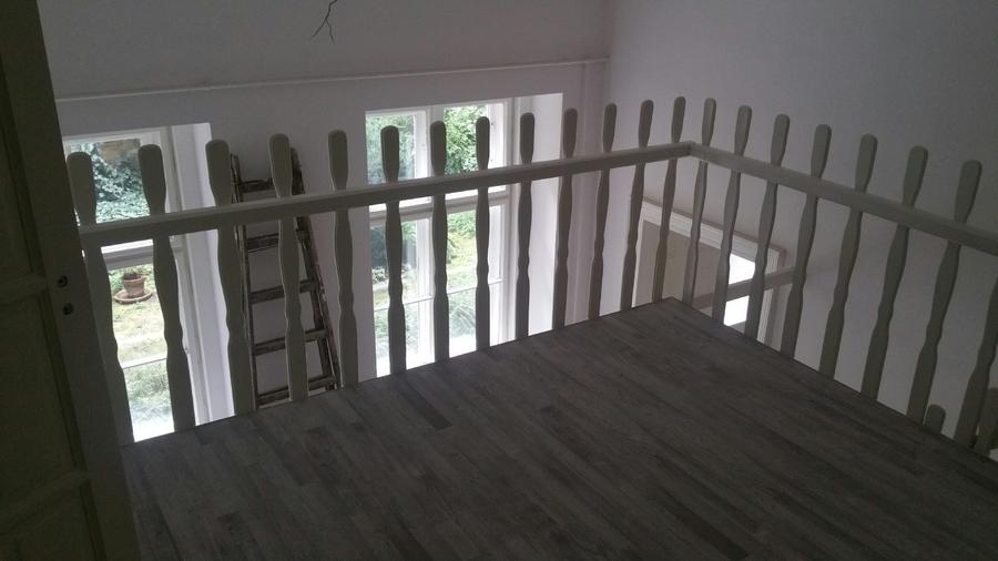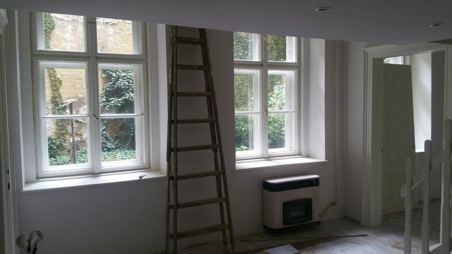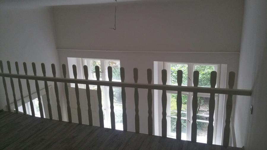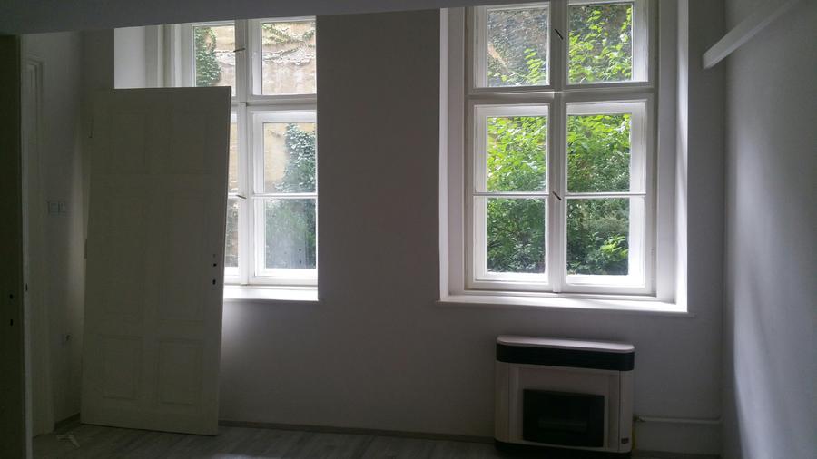 Az 56 nm-es teljesen felújított lakás földszinti, nagyon világos és előtte egy szép zöld kert van. A lakás belmagassága 4,2 m, így a 2 szoba galériázott (14 nm-esek). 2 zuhanyzós fürőszoba Wc-vel került kialakításra - az egyik lent, a másik a galérián.