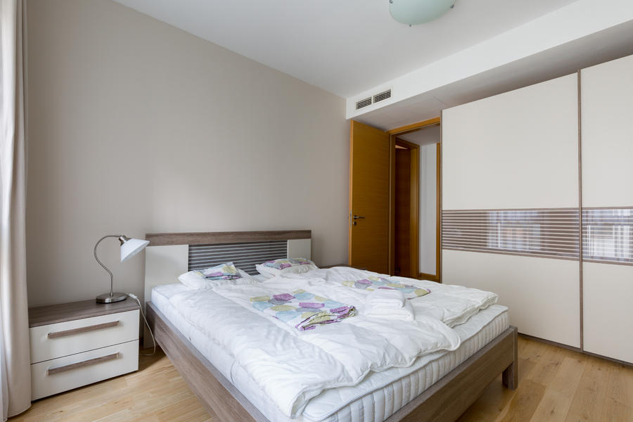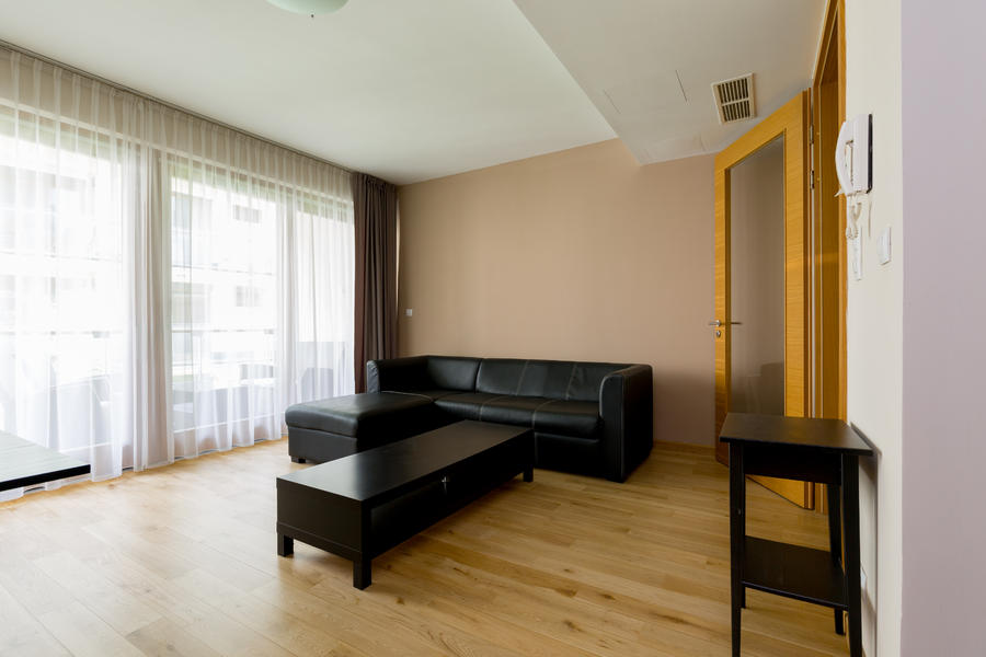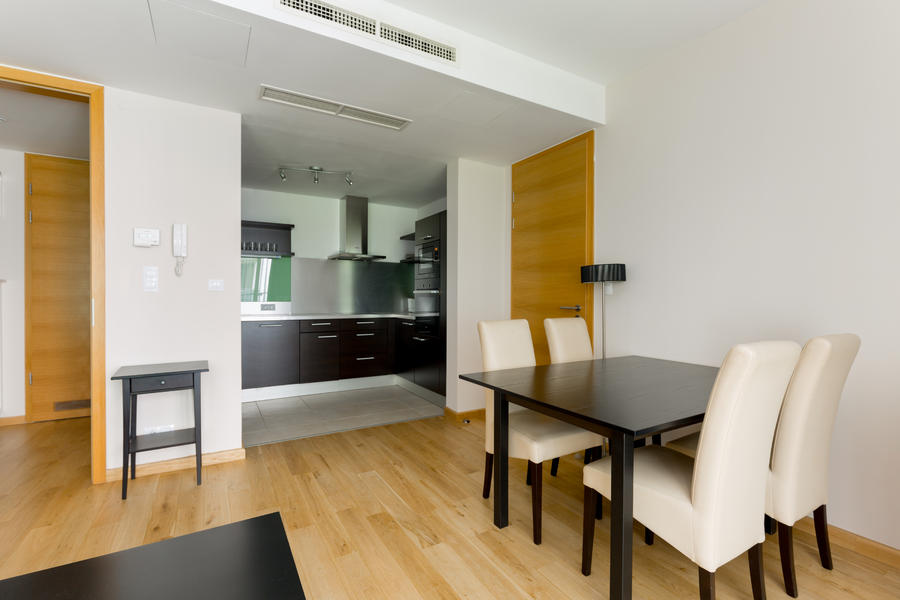 Az 56 m2-es, legfelső, 7. emeleti lakásban van egy nagy teraszos nappali, egy hálószoba, fürdőszoba, gépesített konyha.
