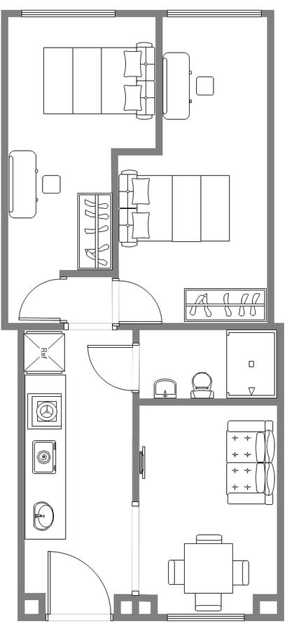 A lakás 48 nm-es, s a földszinten helyezkedik el. Az épület maga tiszta, jó állapotú, rendezett és csendes. A lakás teljesen felújított valamint felszerelt, rendkívül világos és hangulatos. 1 nappali, 2 hálószoba, felszerelt konyha és 1 fürdőszoba ( zuhanyzó + Wc ) alkotja a lakást. A hálószoba ablakai az utcára néznek.