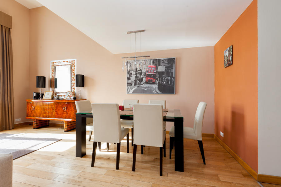 A 135 m2-es, minden igényt kielégítően berendezett, negyedik emeleti lakásban van egy teraszos nappali, 3 hálószoba, két fürdőszoba, gépesített konyha, étkező, gardrób és tároló helyiség is.