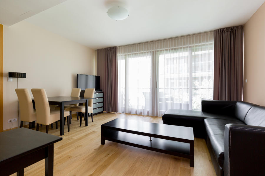 A 47 nm-es, minden igényt kielégítően berendezett, első emeleti lakásban van egy teraszos nappali, egy hálószoba, fürdőszoba, gépesített konyha és étkező.