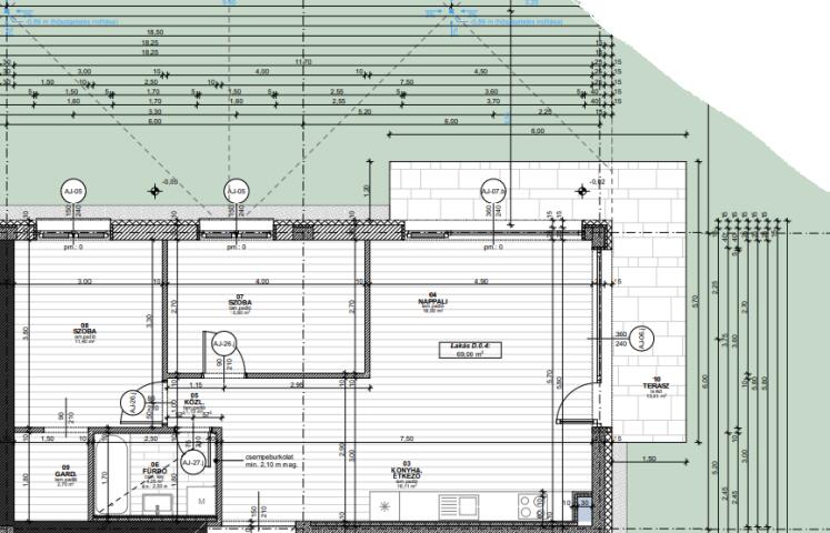 69 m² lakótér + 14 m² terasz + 96 m² saját kert
