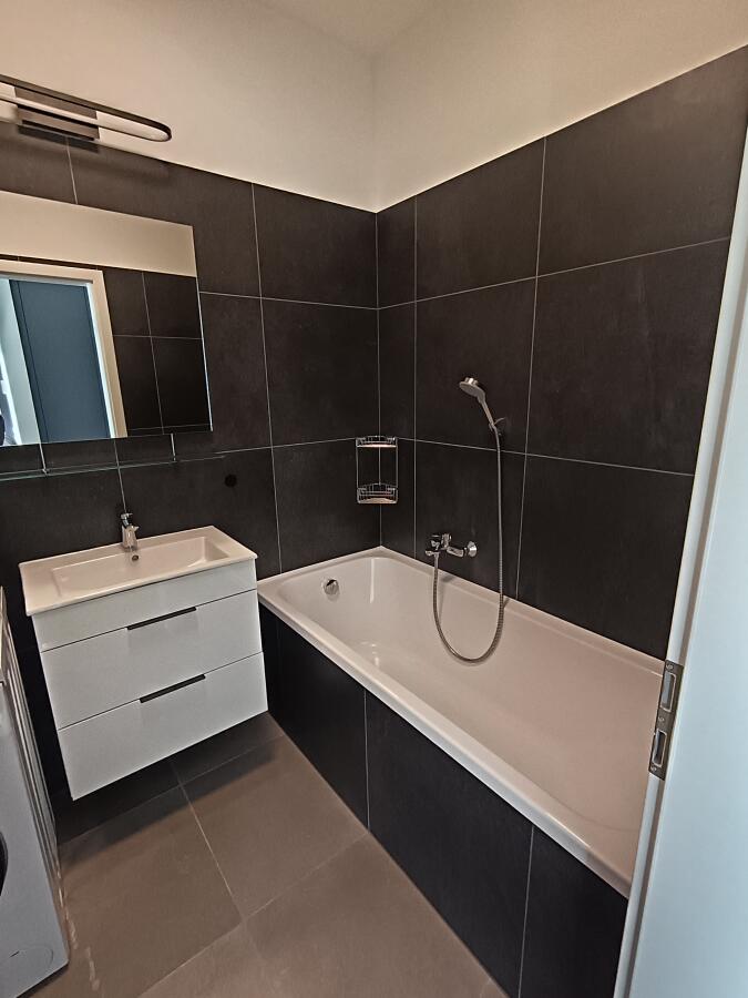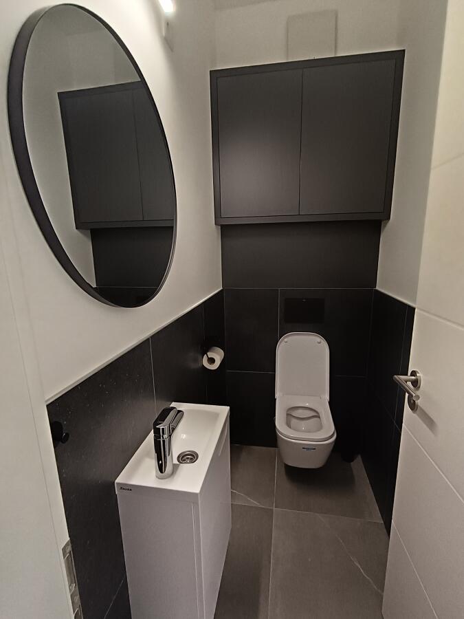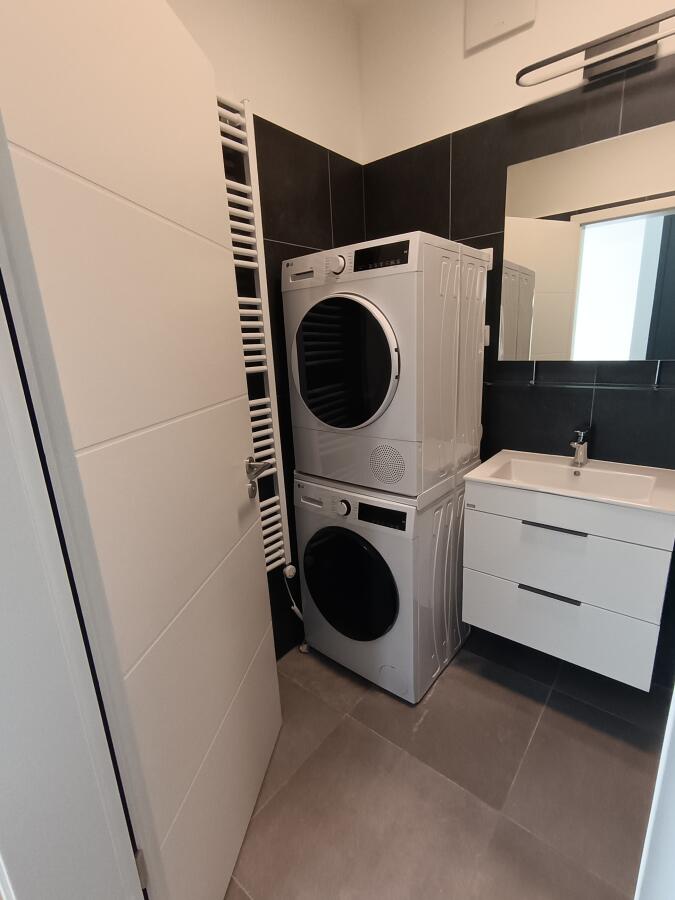 - igényes fürdőszoba LG mosógéppel és szárítógéppel